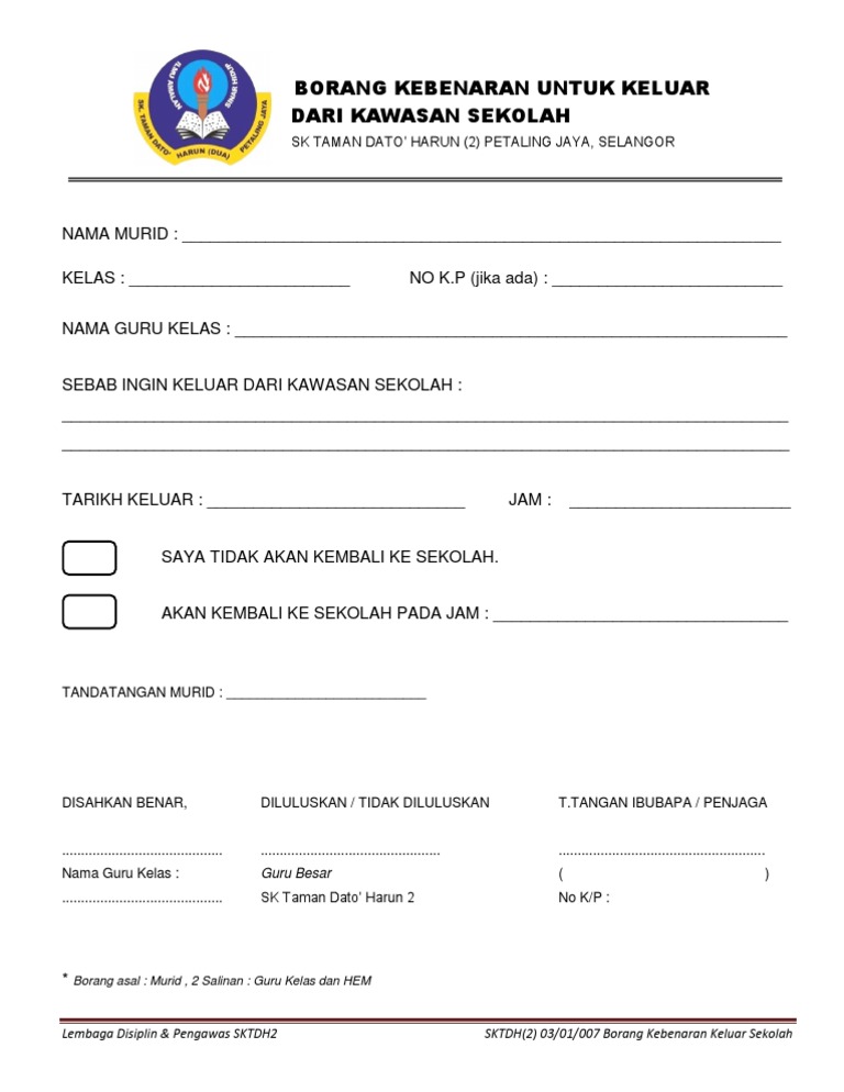 Related : Borang Pelepasan Gst Sekolah - Borang Kebenaran Untuk Keluar Dari Kawasan Sekolah : Bagi sekolah yang mempunyai 2 sesi persekolahan:.