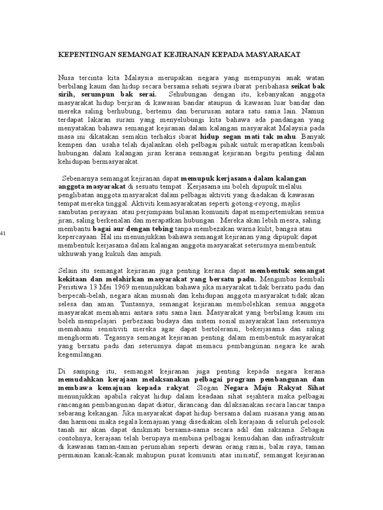 WATIKAH DARI HATI: Karangan Bahan Rangsangan PMR - Punca ... from 2.bp.blogspot.com Semangat kejiranan dapat membenarkan masyarakat untuk memupuk semangat bekerjasama. Semua pihak hendaklah mengamalkan semangat kejiranan. Hal ini sedikit sebanyak memberi kesan terhadap pengabaian kepentingan kehidupan bermasyarakat terutama sekali dalam kalangan kejiranan. Antara kepentingan semangat kejiranan adalah memupuk perpaduan antara setiap ahli masyarakat di negara ini. Mengukuhkan semangat perpaduan dalam kalangan penduduk. Sebenarnya semangat kejiranan dapat memupuk kerjasama dalam kalangan anggota masyarakat di sesuatu tempat. Lihat gambar di bawah ini dengan teliti. Kelunturan semangat kejiranan dalam kalangan masyarakat pada era globalisasi yang semakin canggih amat membimbangkan kerana bakal menjejaskan struktur sosial kehidupan bernegara.