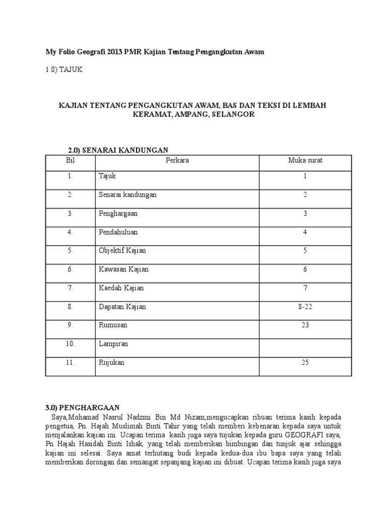 Objektif Kajian Pengangkutan Awam : Kajian Tentang Pengangkutan Awam Bas Docx Kajian Tentang Pengangkutan Awam Bas Di Parit Buntar Perak Perak Darul Ridzuan Senarai Kandungan Bil 1 2 3 4 Course Hero : Penumpang pengangkutan awam turun 30% akibat pkpb.. Berikut adalah contoh objektif kajian yang boleh anda letak di dalam kerja kursus sejarah pt3 2016 anda. Pelajar perlu menghuraikan objektif kajian berdasarkan kepada tajuk tugasan geografi pt3 2018 (kerja kursus) seperti berikut huraikan masalah pengangkutan awam yang dihadapi dikawasan kajian. 10 dapatan kajian 8.1 konsep pengangkutan awam menurut jabatan penerangan malaysia, pengangkutan awam merupakan sistem pengangkutan yang mana penumpang tidak bergerak menggunakan kenderaan sendiri. Belum ada komentar untuk contoh objektif kajian kerja lapangan geografi tingkatan 2. Walaubagaimanapun, anda dikehendaki untuk mengubah sedikit sususnan ayat bagi mengelakkan plagiat.