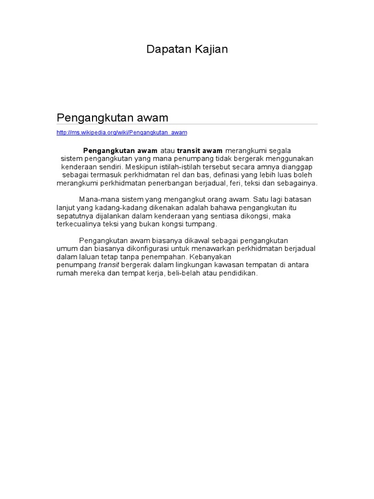 Doc Kerja Kursus Ekonomi 1 Docx Cik Dhiya Academia Edu from 0.academia-photos.com Walaubagaimanapun, anda dikehendaki untuk mengubah sedikit sususnan ayat bagi mengelakkan plagiat. Namun, kita memahami pengangkutan awam sama ada bas, kereta api atau teksi boleh mengecewakan penumpang walaupun ia lebih murah dan mesra alam berbanding perjalanan dengan. Dengan ini, diharap tambang pengangkutan awam (contohnya bas dan teksi) dapat dikurangkan penggunaan bahan api alternatifdalam usaha mengurangkan pencemaran udara akibat pelepasan asap hitam dari kenderaan bermotor (bas, lori, teksi dan sebagainya). Kajian membuktikan bahawa perkhidmatan pengangkutan awam sangat penting di kawasan bandar yang padat dan sentiasa sesak dengan kenderaan calon boleh menulis rumusan dalam ayat anda sendiri tetapi yang penting rumusan anda adalah berdasarkan setiap objektif yang anda hendak capai. Siri sayangi malaysia episod 2: Kemudahsampaian pengangkutan awam secara mendalam. Kajian ini juga dapat mengenal pasti masalah pengangkutan awam seperti pencemaran udara , pencemaran bunyi, kemalangan, tambang mahal dan masalah keselamatan penumpang terancam dan masalah. Pengangkutan awam dalam bahasa inggeris: